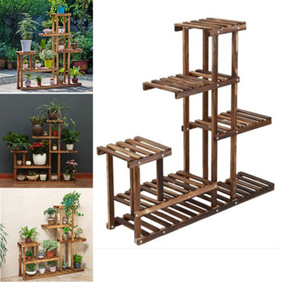 Ufine 9 Tier Wood Plant Stand 47 2 High Widen Carbonized 17 Potted Flower Pot Organizer Shelf Display Rack Holder For Indoor Outdoor Patio Garden Corner Balcony Living Room Amazon In Garden Outdoors
